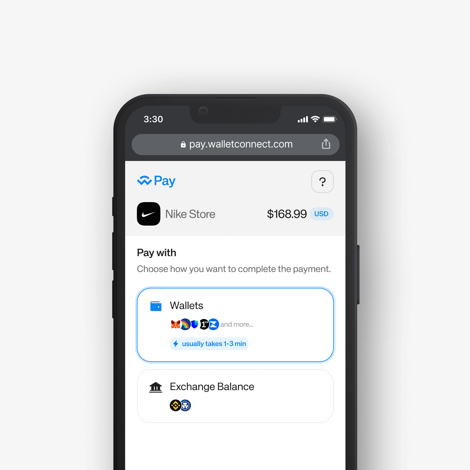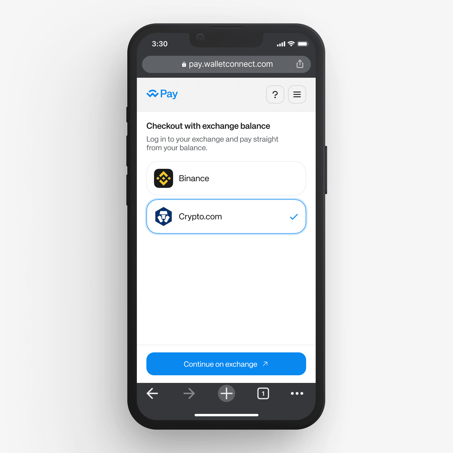 Alternatively, users can choose to pay using their balance on a supported exchange.