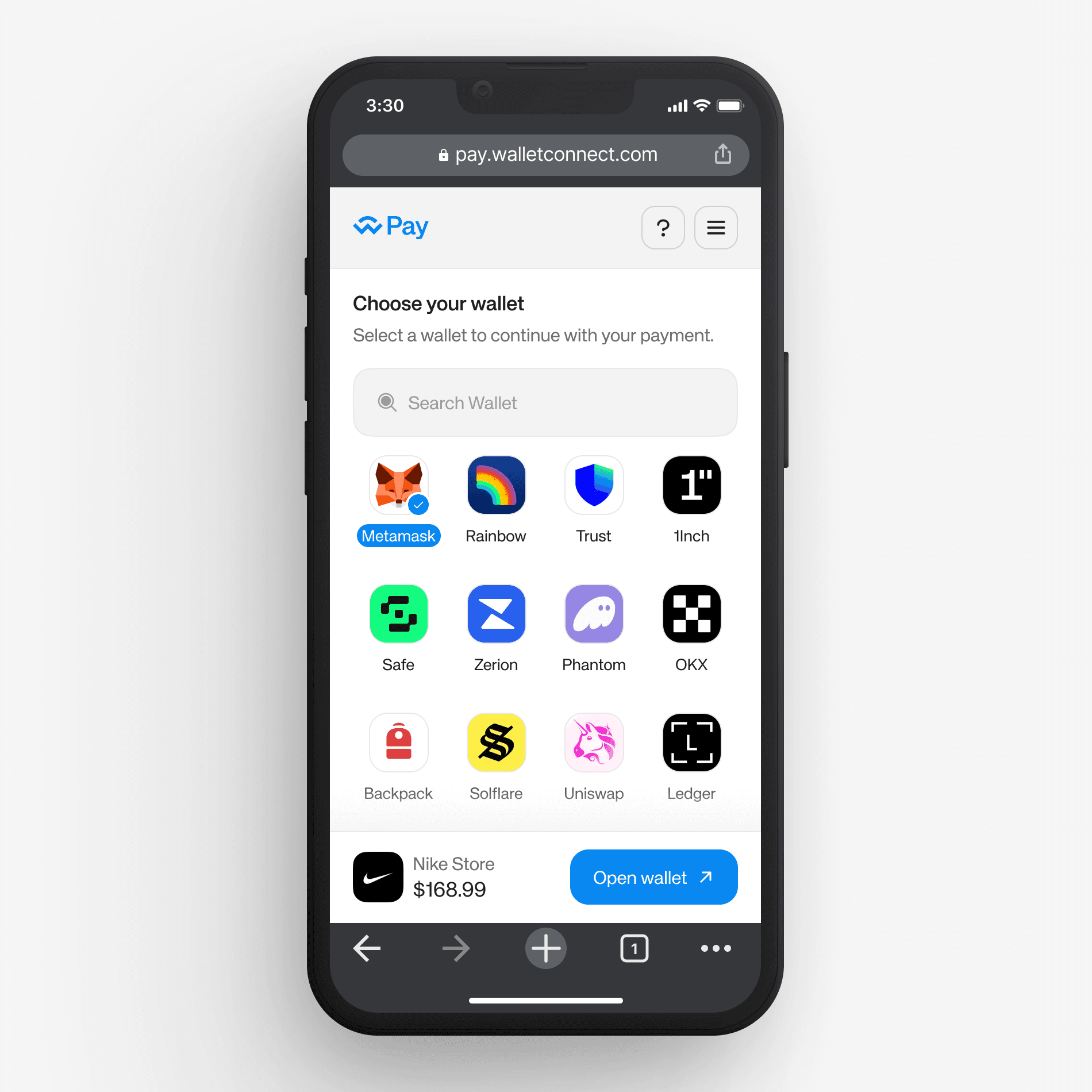 If the wallet supports WalletConnect Pay, the payment flow is handled natively inside the wallet